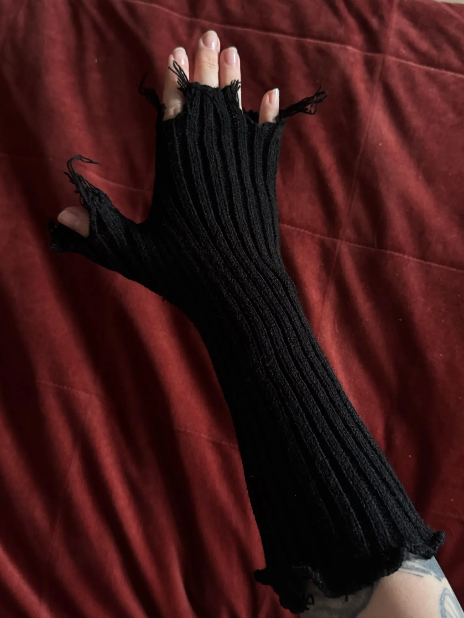 Crafted from soft acrylic, these gloves offer a comfortable fit for extended wear. Fingerless cuff design allows for dexterity and style, perfect for texting or gaming.